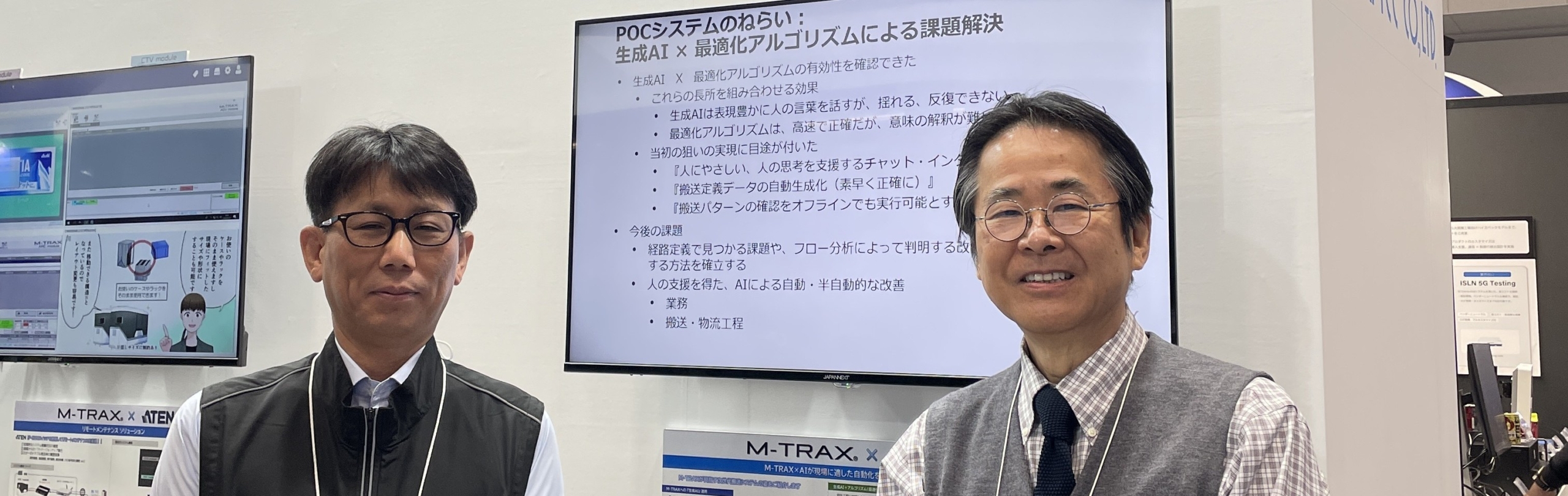 今回のEXPOでは、独自技術で開発したマルチアイテム自動搬送システム「M-TRAX」の実機を展示し、連日多くの来場者が足を止める中で実機デモンストレーションが行われました。